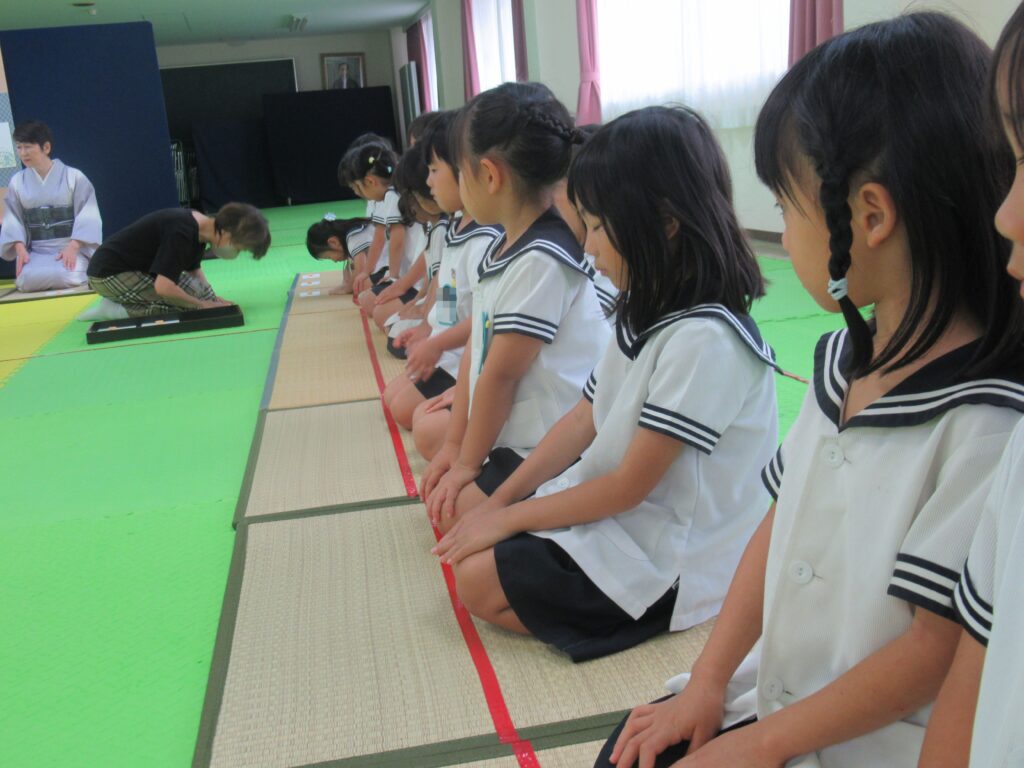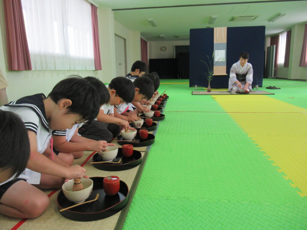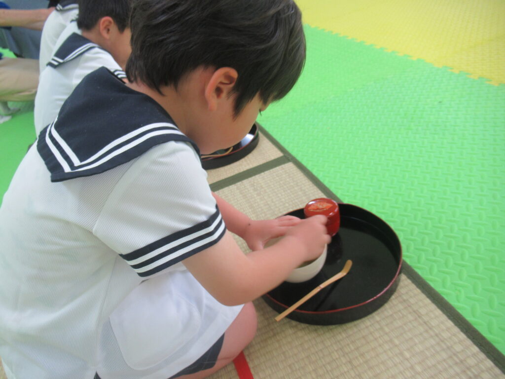 久しぶりのお茶のおけいこでしたが、理事長先生のお話をよく聞いて頑張りました。