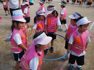 先生たちと一緒にダンスをしたり、かけっこのゴールで先生にギュッとしてもらったり、とても嬉しそうでした。