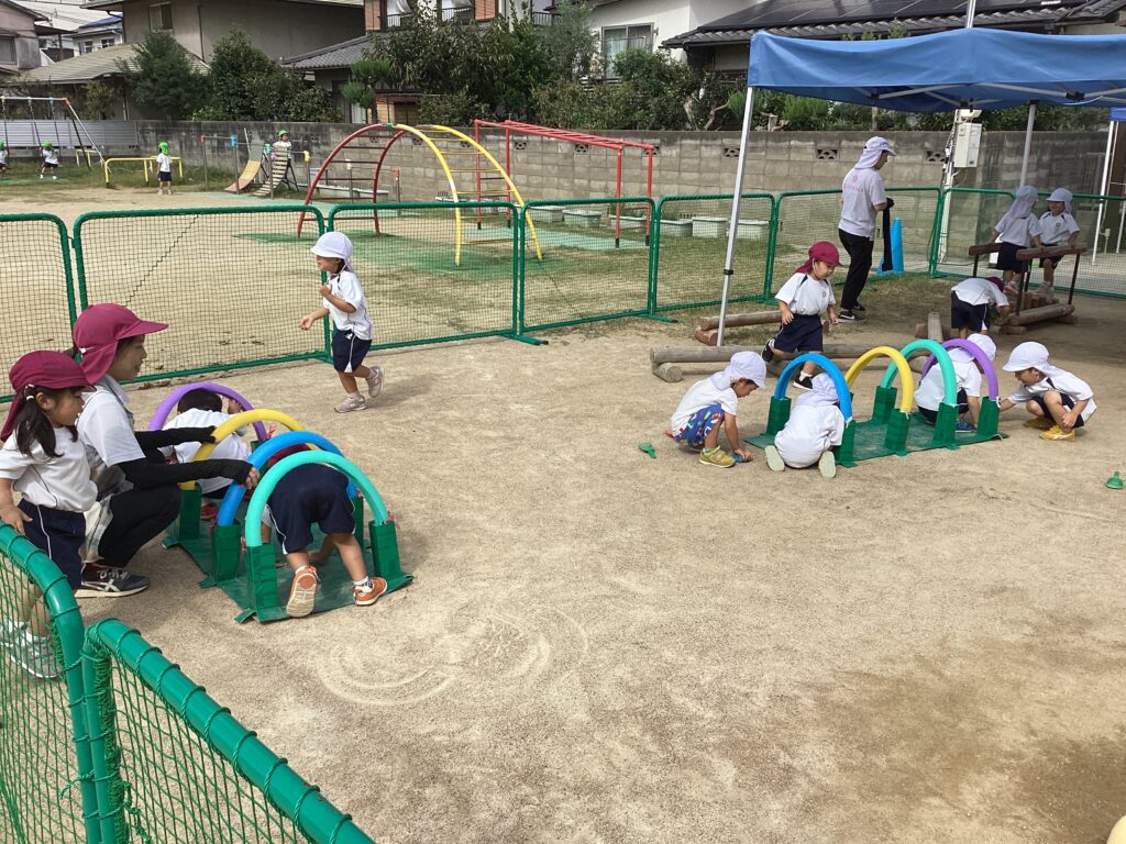 運動会で使ったトンネルを出して、みんなでトンネルくぐり!