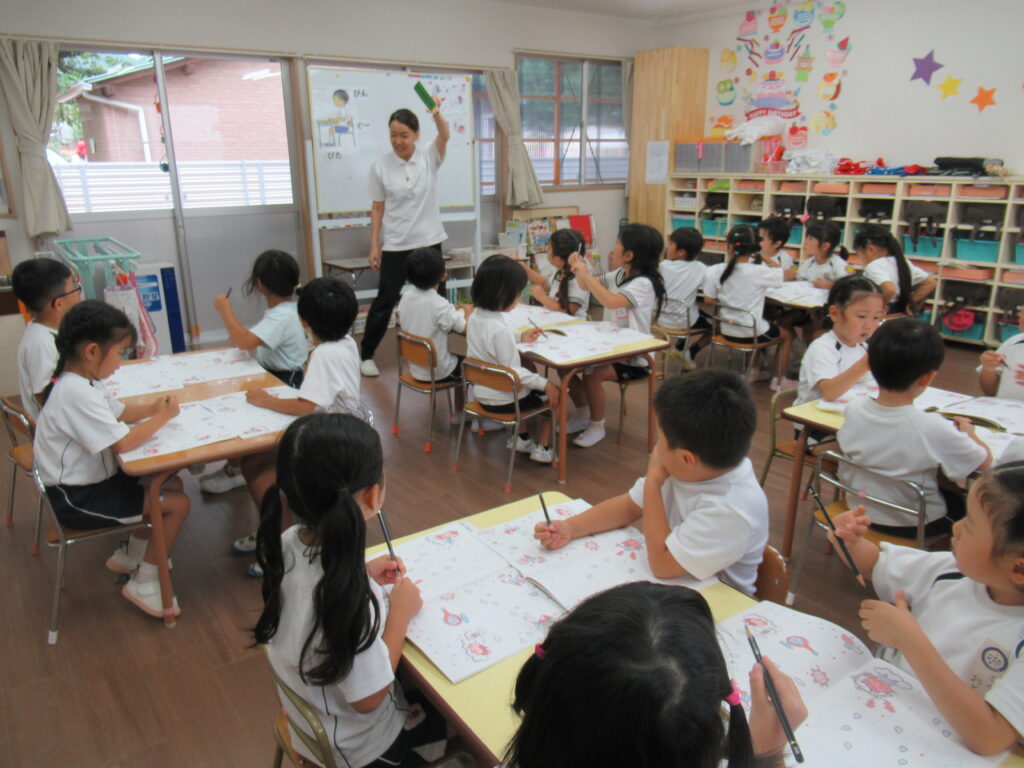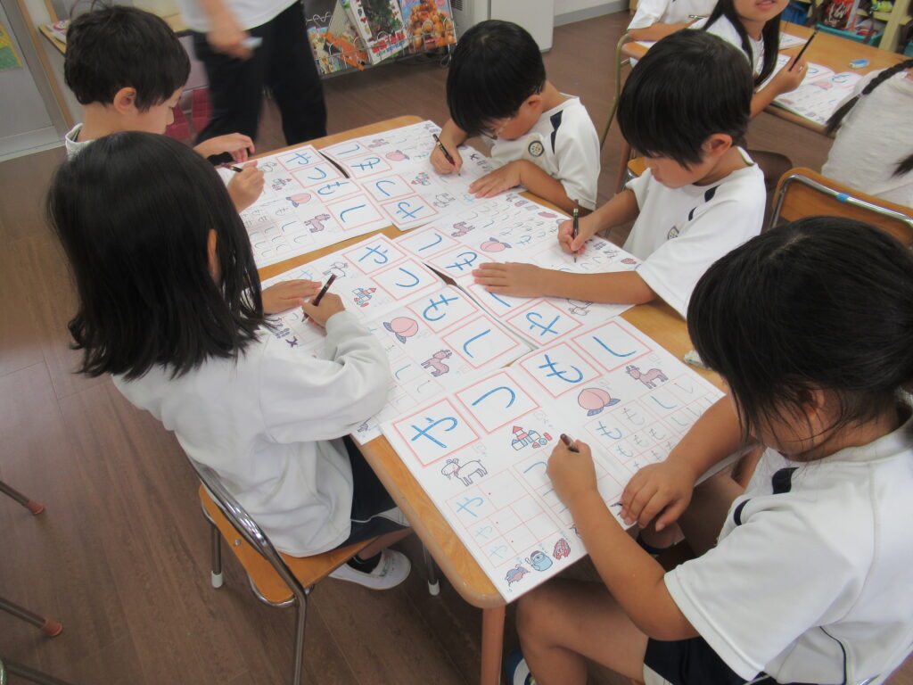 【ぐー・ぴた・ぴん】 の姿勢、えんぴつの持ち方もばっちりよく覚えていましたね。