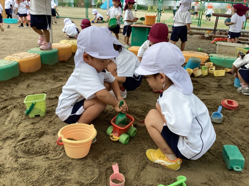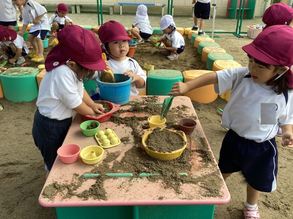 砂場遊びは、お友だちと一緒に何かを作ることも増えてきました。