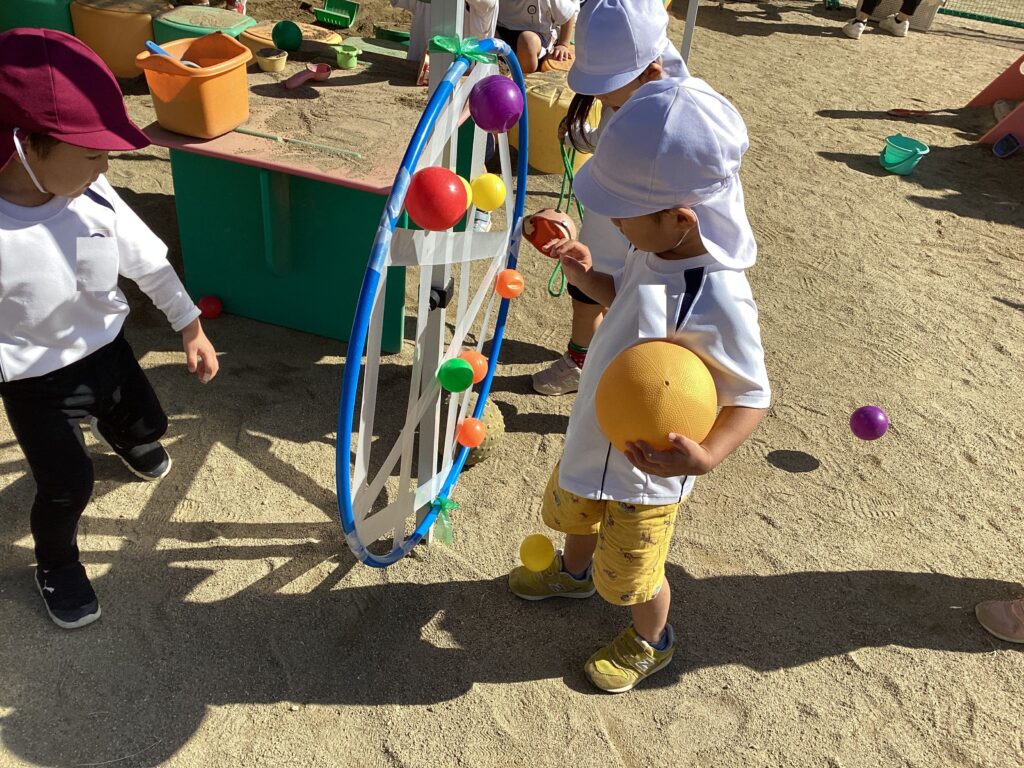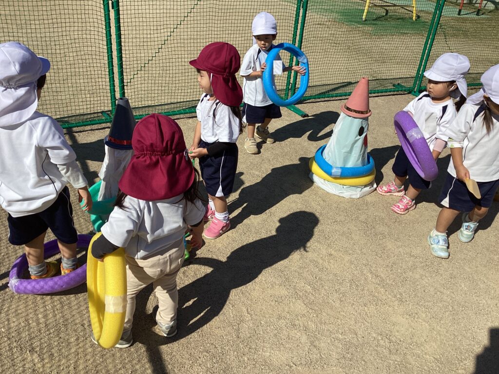おばけの輪投げは、何度も入れて外してと楽しんでいました。