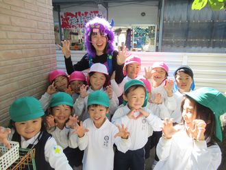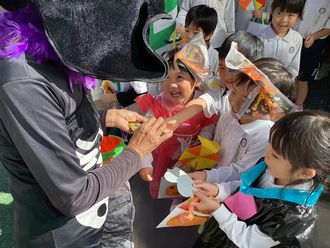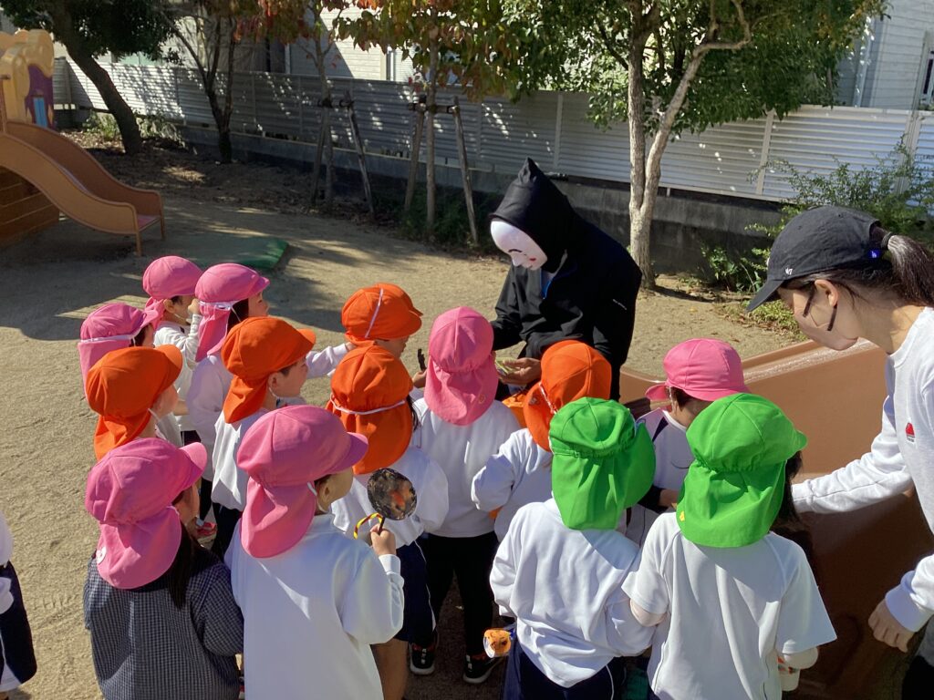 がいこつやモンスター、顔なしお化けを探して幼稚園中を駆け回りました。