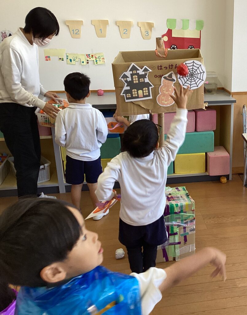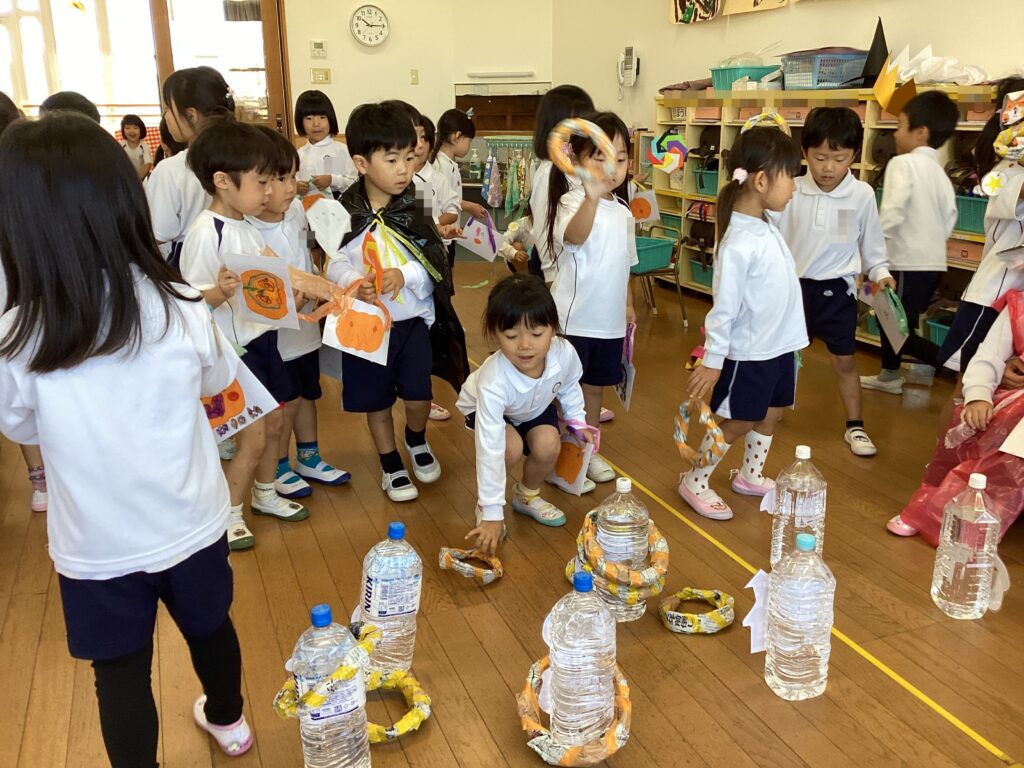 新着情報(園の生活) 今週の4歳さん 2025.10.30 今日は、4歳児クラス全員でハロウィンパーティーごっこをしました。各クラスのゲームをして回ったり、クラスにあるお菓子を「トリックオアトリート!」と言ってもらったりしました。もらったお菓子を見せ合う姿も見られました。たのしかったね! ハロウィン遊びをしました!(2歳児) 前の記事 ハロウィン探検がありました 次の記事