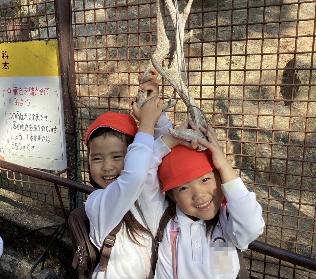チンパンジーとにらめっこをしたり、ペンギンの餌やりをみたり、シカの角を持ったりしました。
