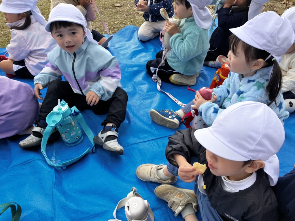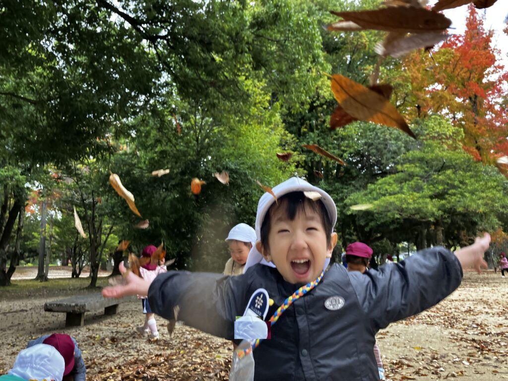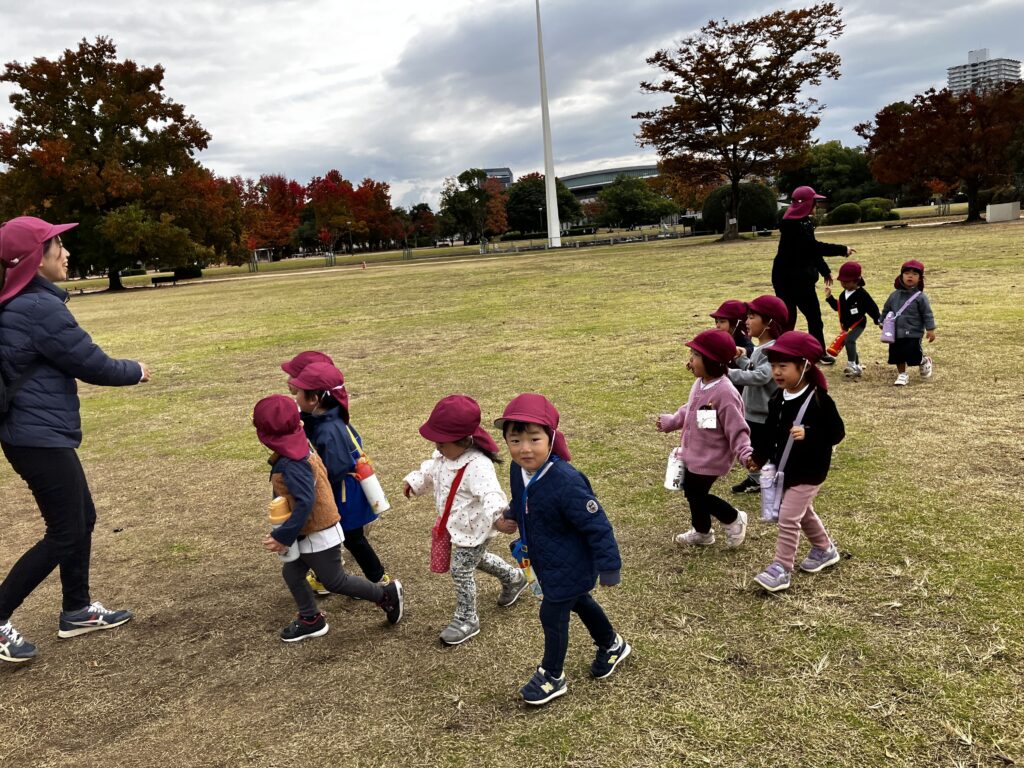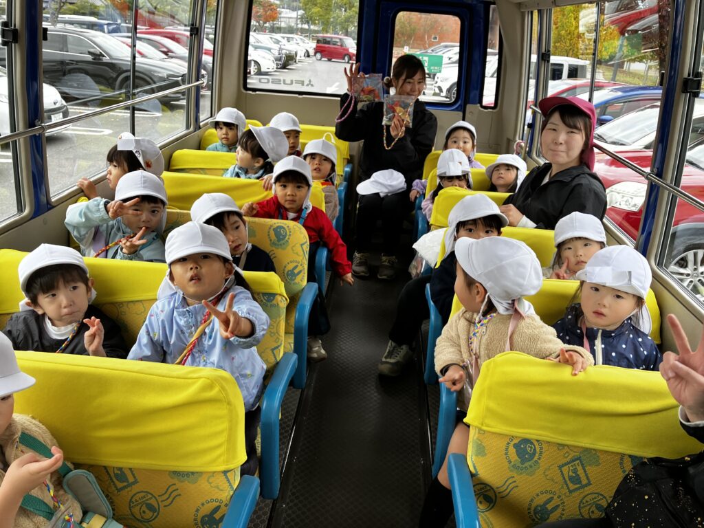 今日は、園バスに乗ってみんなで運動公園に落ち葉拾いに行きました!