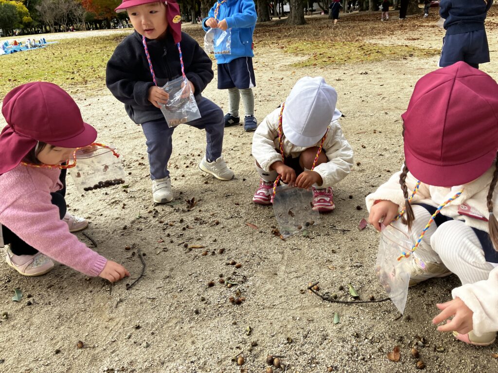食べ終わったら、みんなでどんぐりや落ち葉探し!