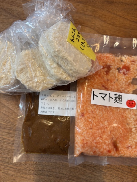 お土産に、セントラルフーズさん自家製のトマト麹とだしラーメンの味噌もいただき、麹を使ったメニューも教えていただきました。