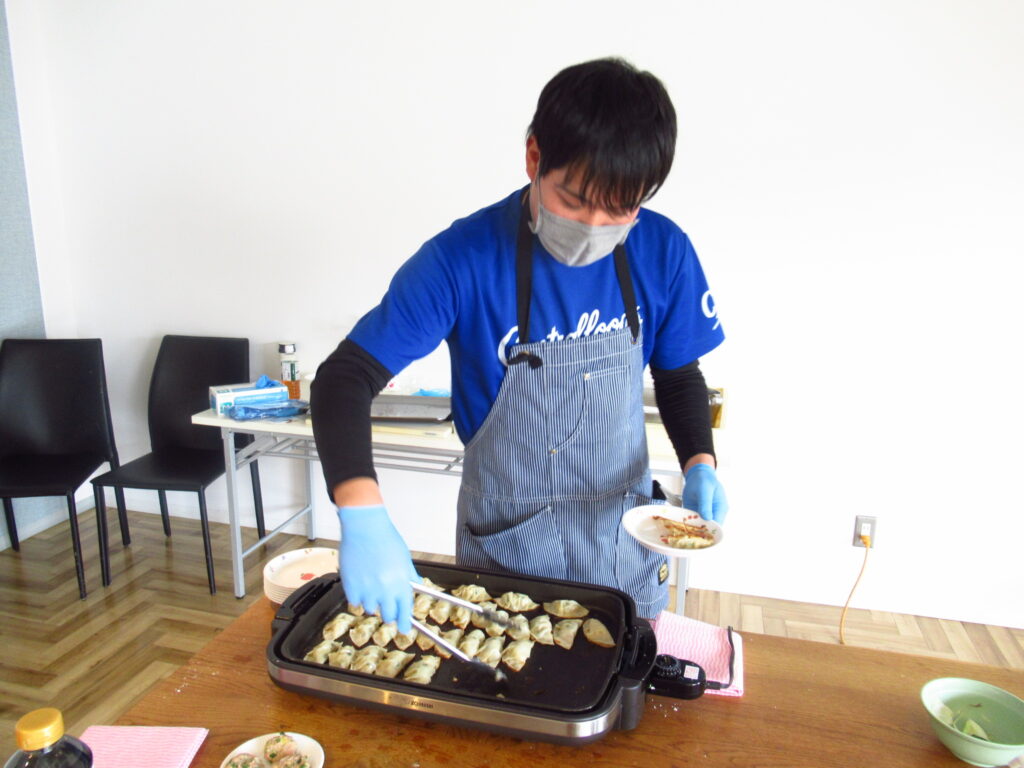 焼き方や包み方のコツを教えていただき、みんなで楽しく餃子を包みました。