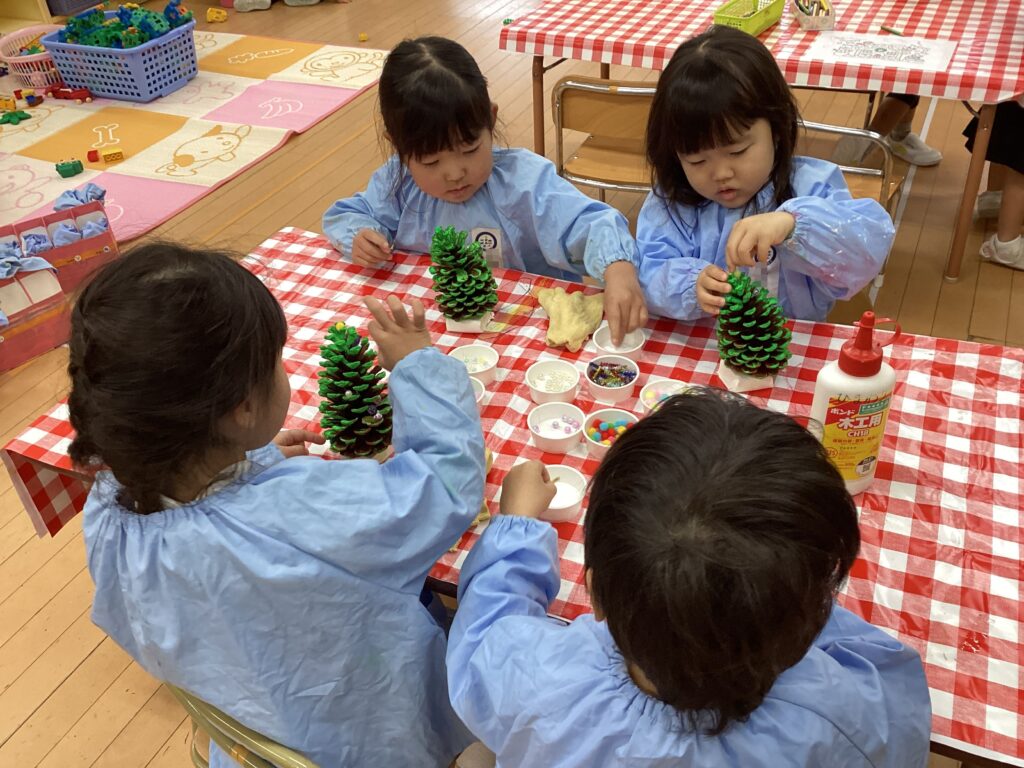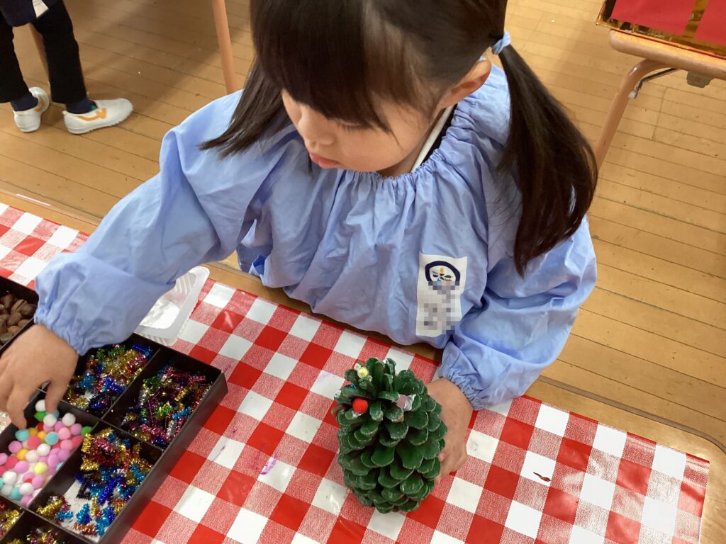 かなり大きい松ぼっくりなのでたくさんの飾りつけをすることができました!