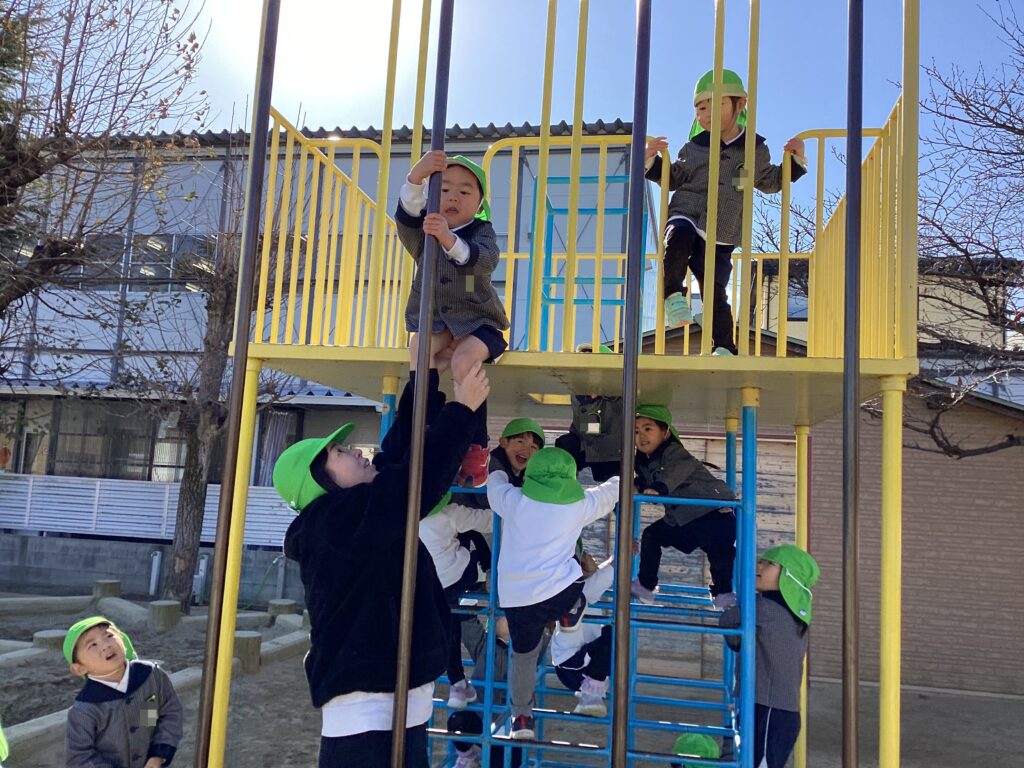 先生に支えてもらいながら上手に降りることができ、「楽しい!!」と何回も何回もしています