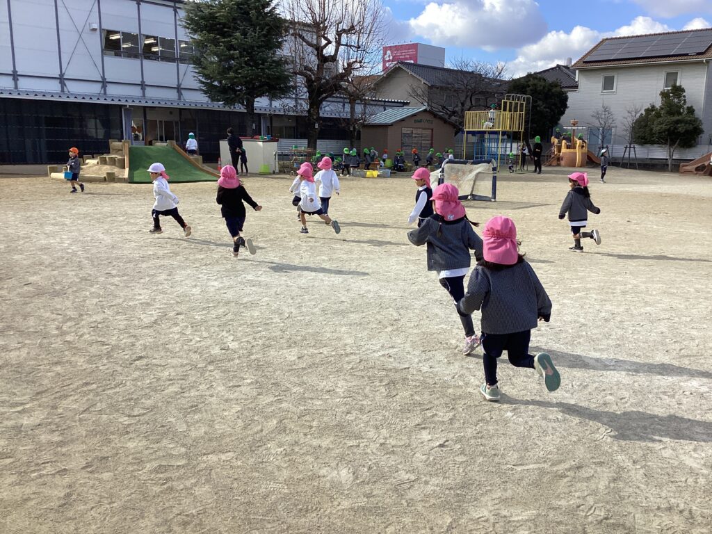 「寒い!」と言いながらもお友だちと一緒に走ると楽しそうにしている姿が見られました!