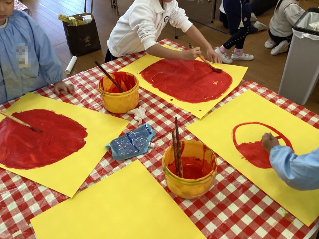 1月のおもいで製作でだるまを作りました。