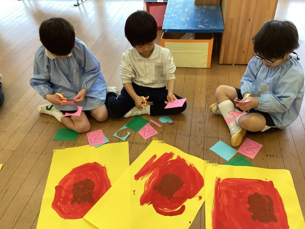 まずは絵の具で好きな大きさ、形を筆を使って描いてみました。