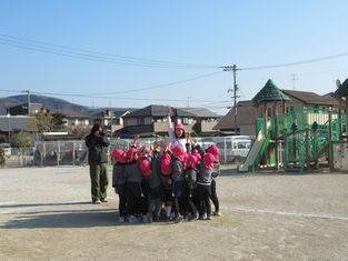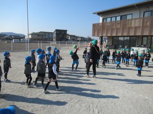 今日はお天気に恵まれ、高島おひさまこども園に園バスで出向き、ドッチボール対決をしました。