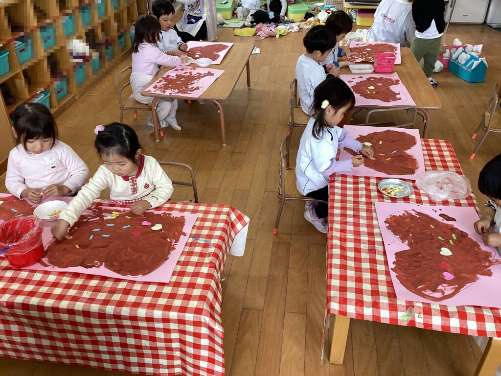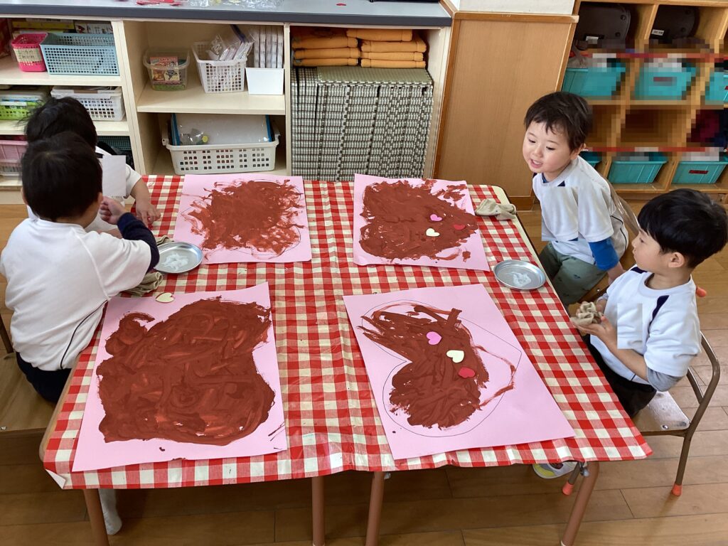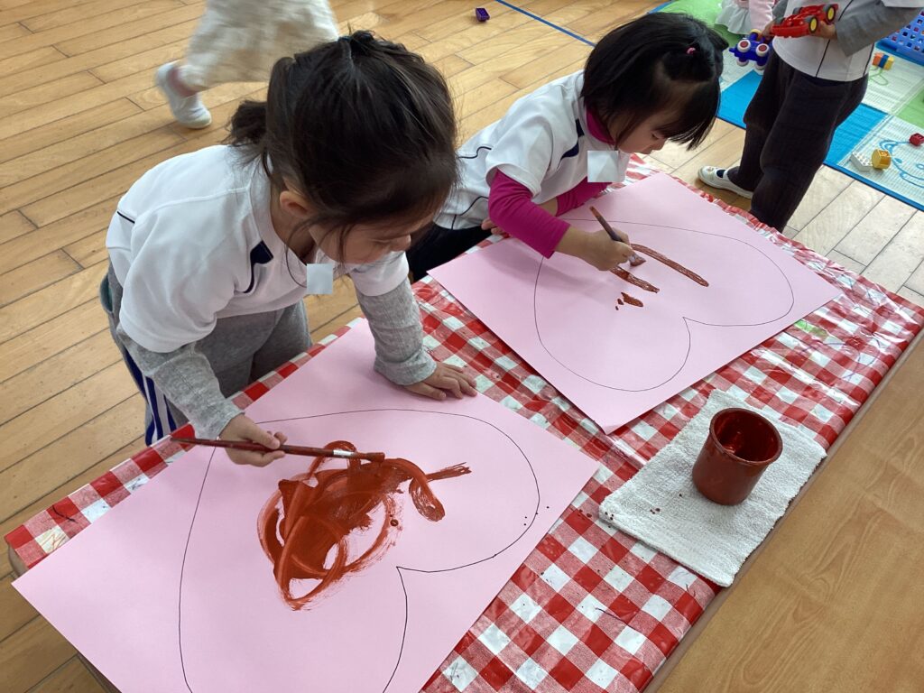 2月14日のバレンタインデーにちなんだ製作遊びをしました。