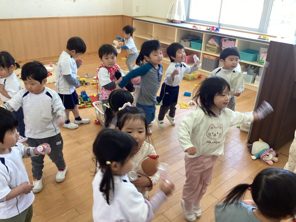 あんず1組さんでは、手作りマラカスを持ってみんなで音楽に合わせてダンスをしています!
