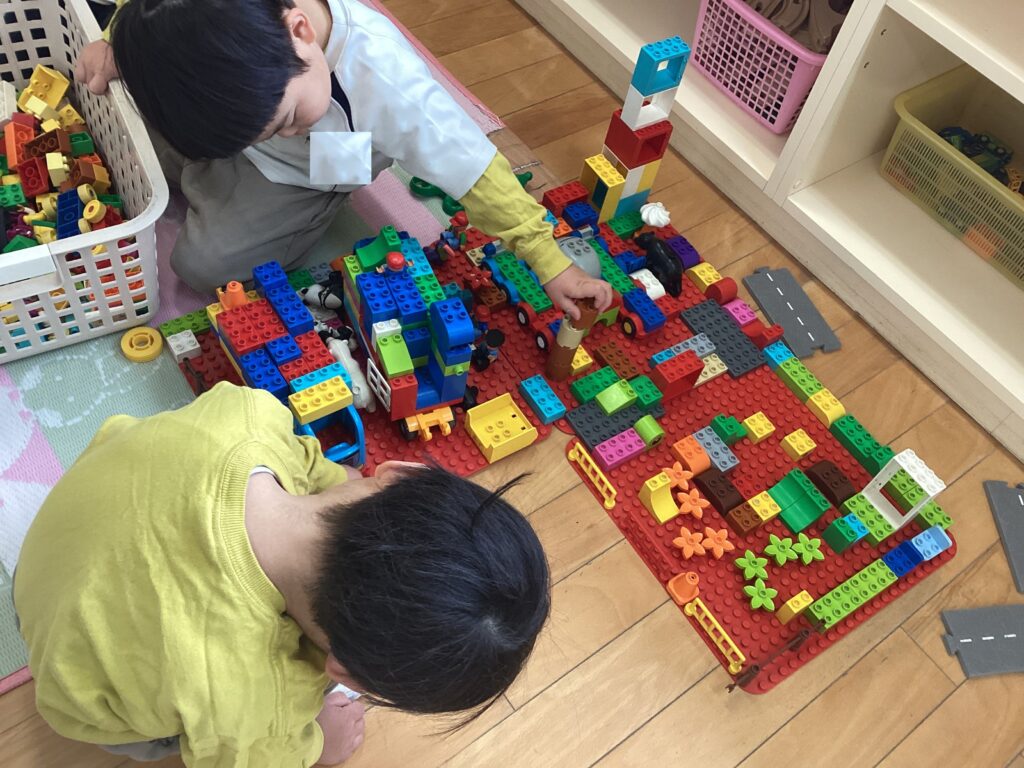 お友だちと力を合わせてレゴブロックでお家を作ったよ!