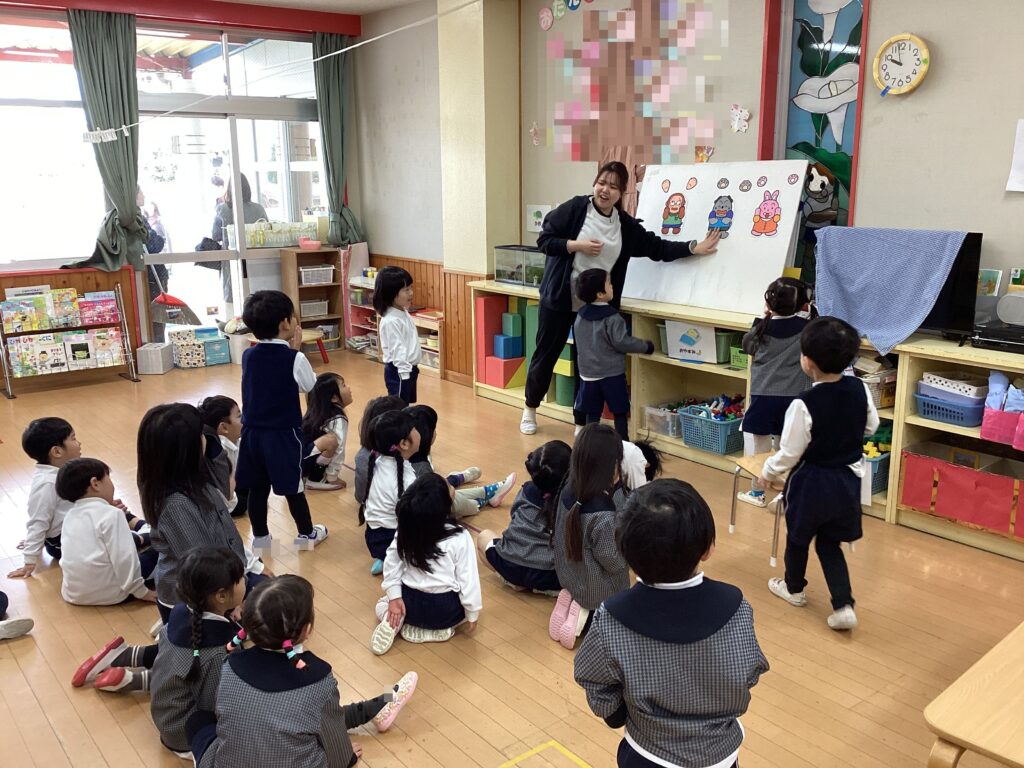 4歳さんはじゃんけんゲームやハンカチ落とし、マス目鬼ごっこをしました。