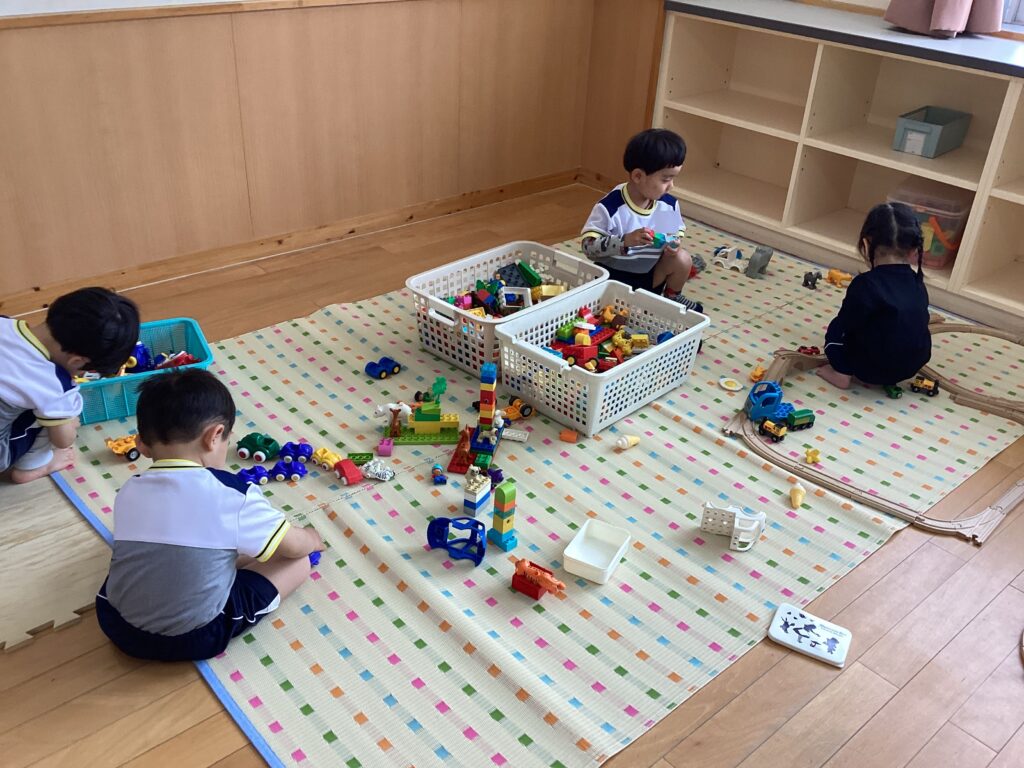 線路を繋げて車を走らせたり、レゴブロックで遊んだりしたよ。