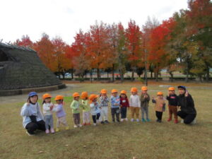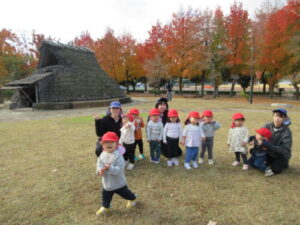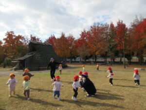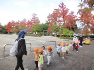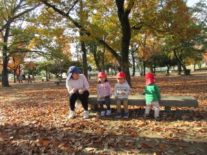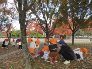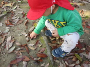「どんぐりあった!」「おおきいどんぐりみつけた」「どんぐりのぼうし!」と大興奮な子どもたち。見つけたどんぐりを先生に見せたりお友だちと見せ合ったりしていました🌟