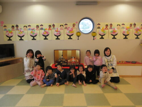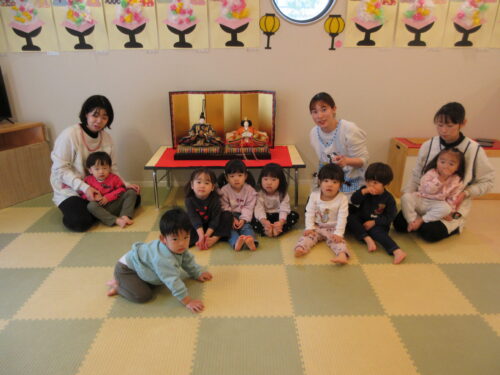 「うれしいひなまつり」の歌を歌ったり、おだいりさまとおひなさまと写真を撮ったりしました。