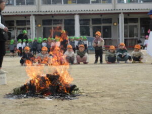 燃えている火をじーっと見つめていたり、燃やした後の炭をお顔や手につけてもらうと嬉しそうにしたりしている様子も見られました。