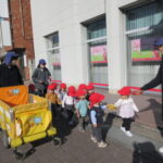 先生からのお楽しみは「おべんとうバス」でした。バスにどんな食べ物が乗ってくるかな?とみんなで一緒に考えながら楽しみました。
