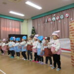 年が明けてお正月遊びを楽しみました。 おせちや鏡餅などのお正月の食べ物に興味津々の様子でお話を聞きました🎍 そして、その後はみんなでお正月遊びをしました。 かるたやコマや羽根つきや福笑いなど、好きな遊びを選んで遊びました。上手に風船を飛ばしたり、福笑いでおもしろいお顔ができたり、いつもとは違うお正月遊びににこにこで遊んでいました😊 楽しかったね!またお部屋遊びの時にもしようね。