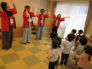 Amy先生と留学生さんが保育園に来てくれました。