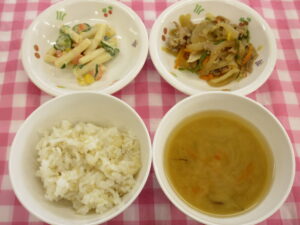 升は好きな色の画用紙を使って折りました。一人で折ることが難しいときは、近くにいるお友達に折り方を聞いたり、代わりに折ってもらったりしていました。教えているお友達も優しく声をかけて教えてくれていました![]()