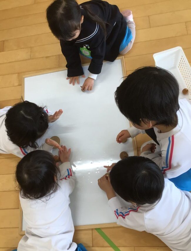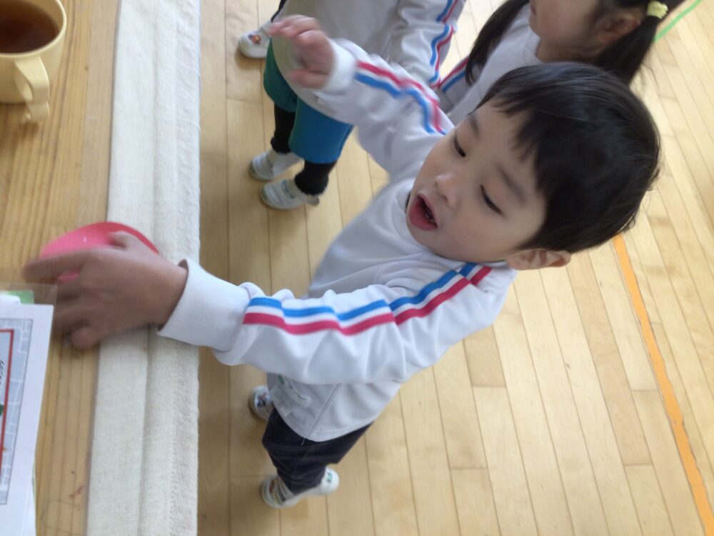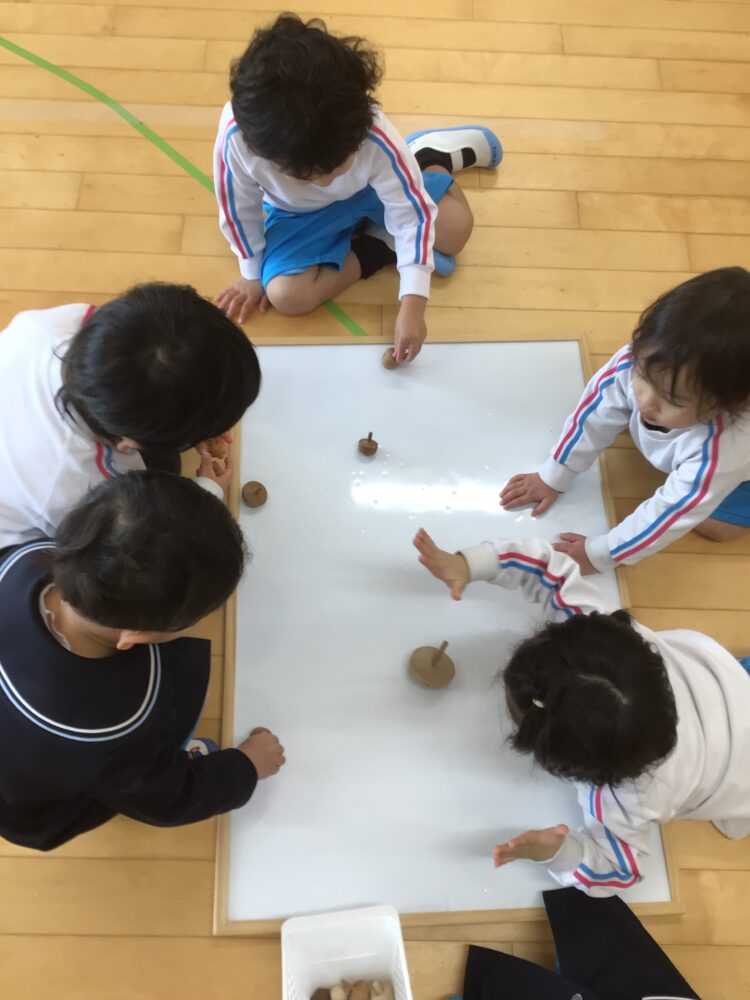 最初はなかなか回せず「むずかし~😢」となっていましたが、何回も挑戦せる中で「見て!できた!」と少しずつ回せるようになりました!![]()