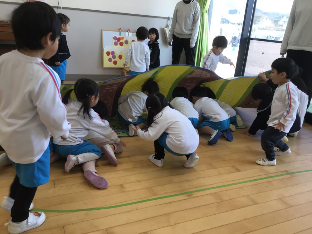きりん組さんは、息ぴったりあうかな?ゲームをしたよ!