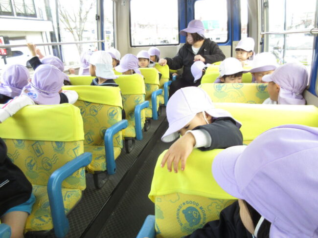 お外が見えやすく、知っている景色になると「○○あるね!」「ぼくのお家この近くだよ」とお友だちや先生に話す声が飛び交っていました
