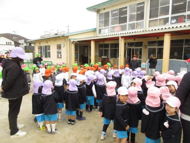 朝つしま幼稚園の園バスを借りて出発しました!