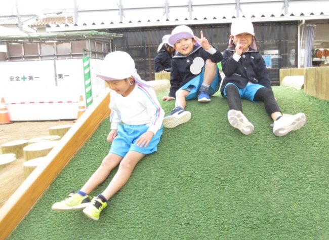 ブランコや築山と、いつもとは違う遊具にウキウキでした![]()