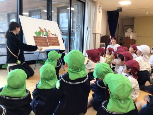 「おおきなかぶ」のパネルシアターも見て、最後はみんなで握手をしてバイバイをしました![]()