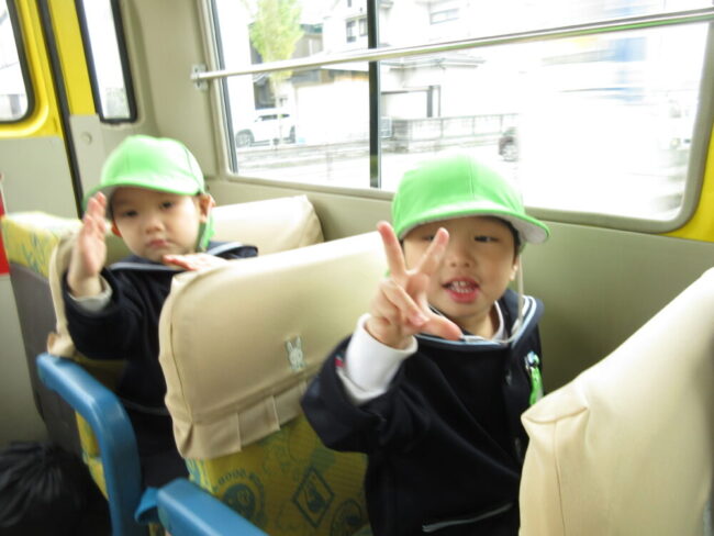 最初は、あんず組さんが乗ってきた幼稚園バスに乗ってドライブ!