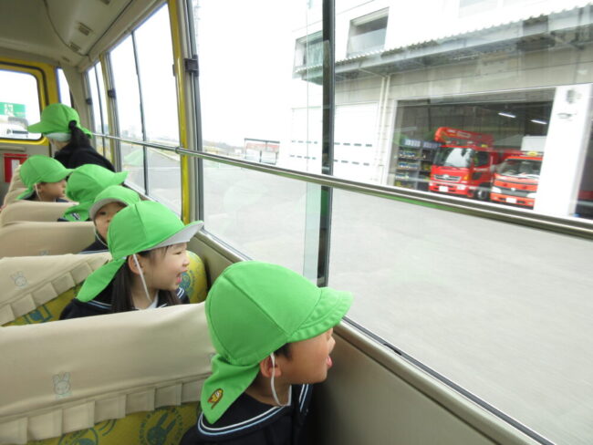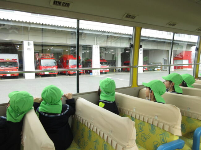 そんな中、消防署の前を通ってたくさんの消防車を見つけると「うわああ!」と今日一番の大歓声がバスの車内に響き渡りました![]()