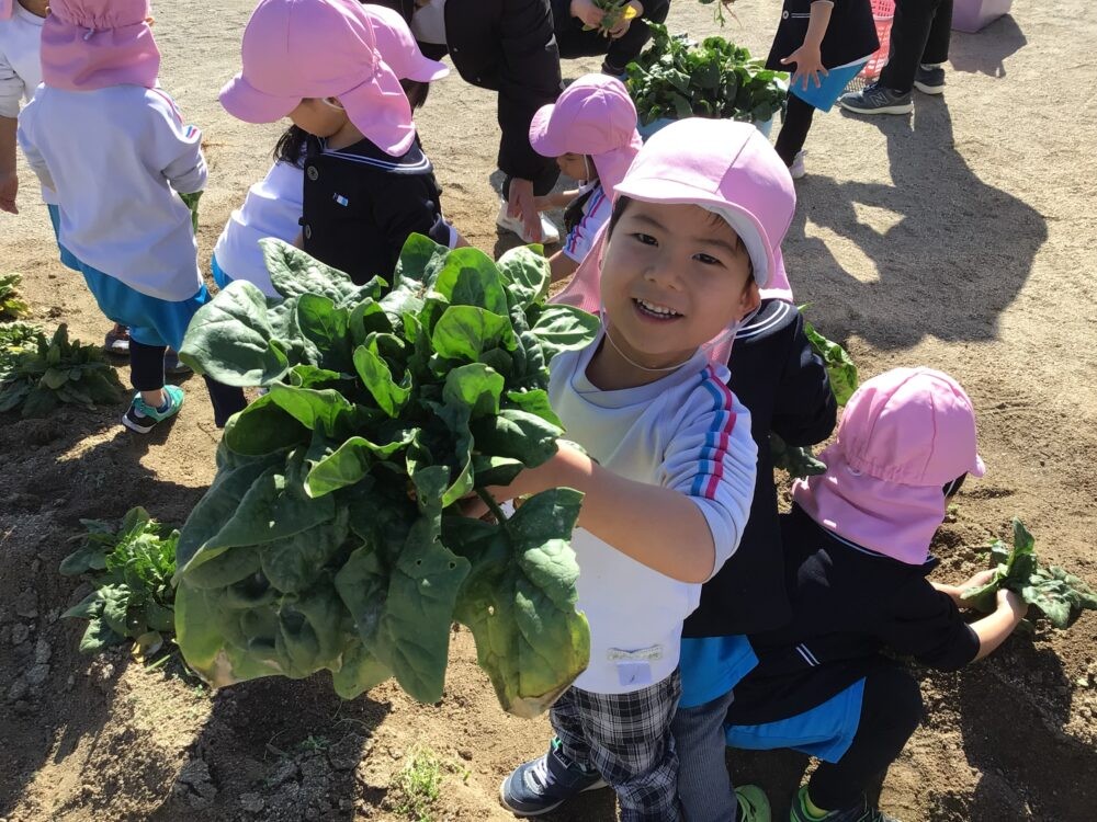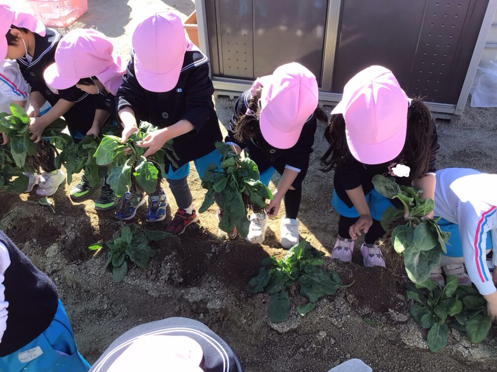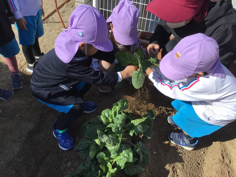 10月に種をまいてお世話していた、ほうれん草の収穫をしました。