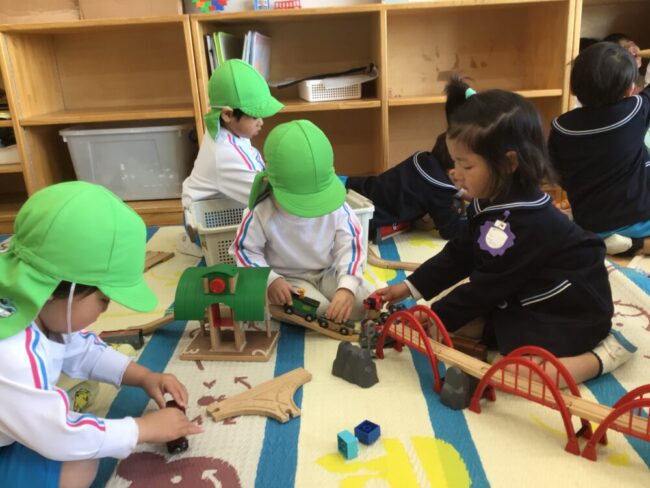 3歳児クラスの「もも組」「ぶどう組」に遊びに行きました![]()