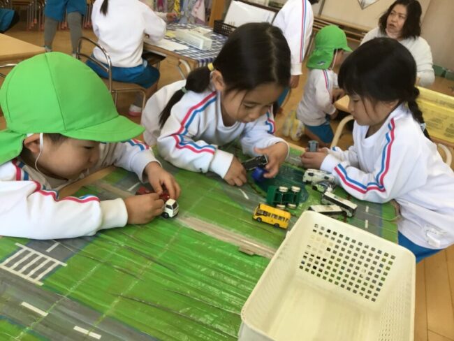 「がたんごとん」「ブッブー」と言って、車や電車を走らせています🚙
