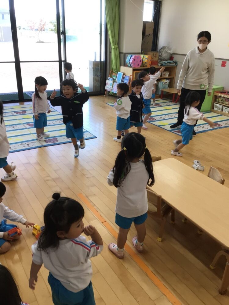 ぱくぱく食べるまねっこをしたり、やきいもグーチーパーの手遊びをみんなで楽しんだり♪
