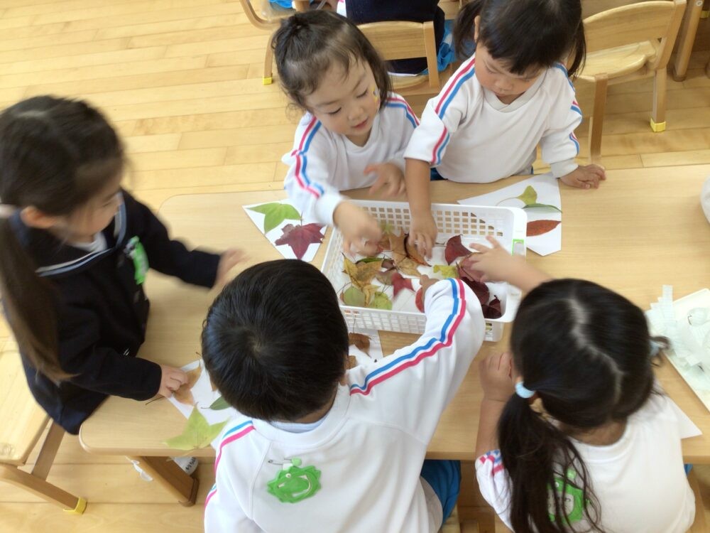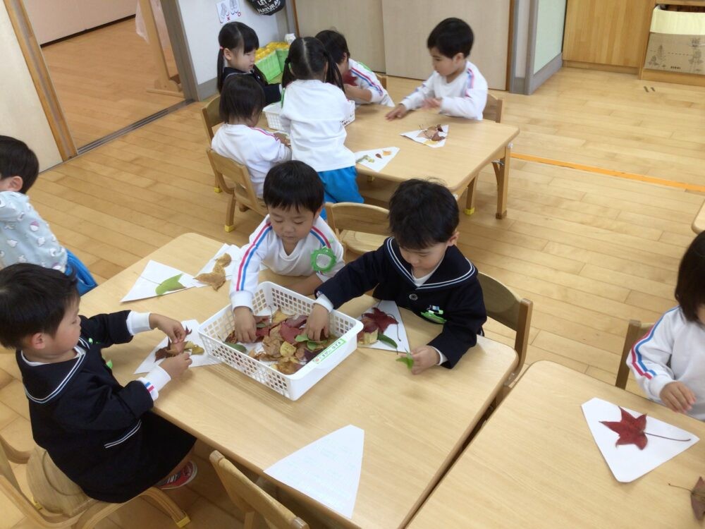 「あかいよ!」「おっきい!」「ちいさいね!」と葉っぱを見ながら楽しみました♫