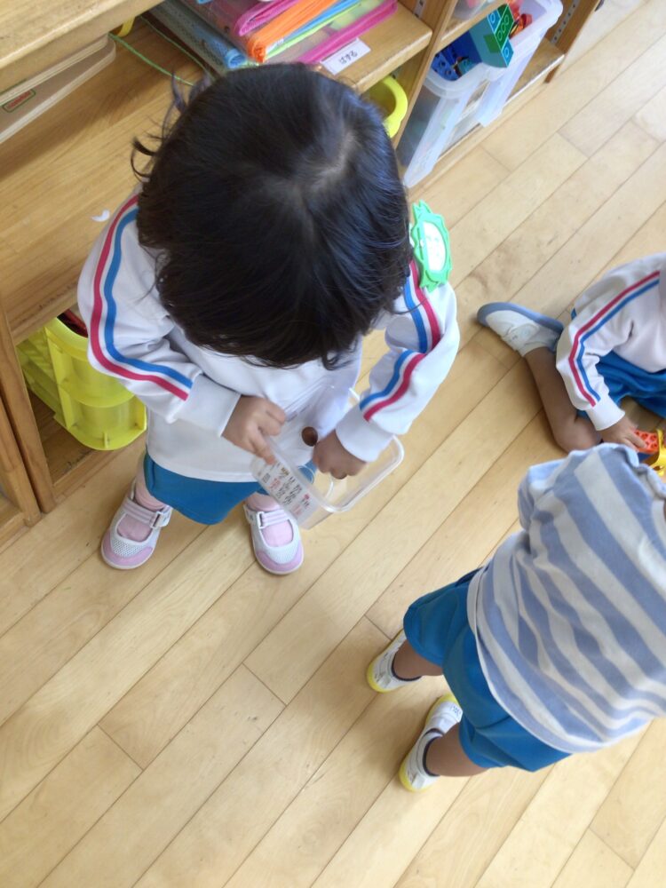 どんぐりが少し小さいので、みんな探すのに苦戦していましたが、見つけた時の「あったー!」と大喜びする姿がとても可愛かったです![]()