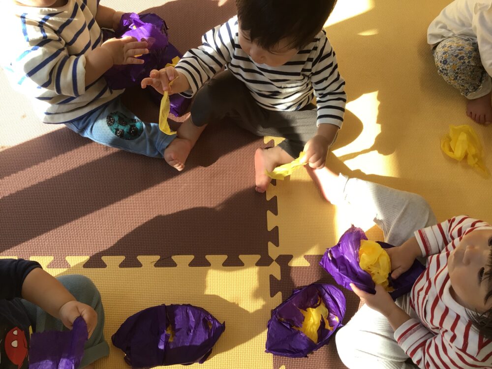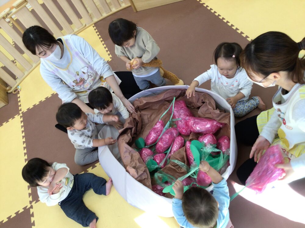 今日はお花紙で作ったお芋でお芋ほりごっこをしました!