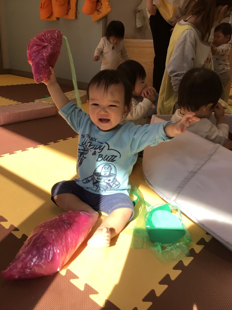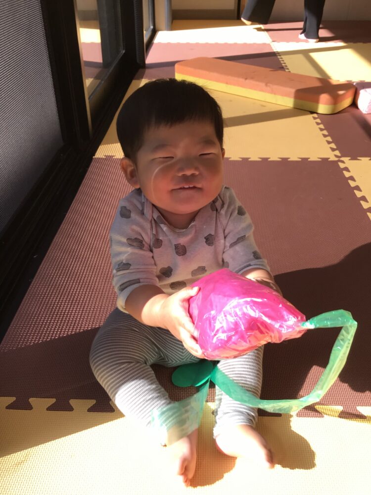 黄色い所を引っ張ってニコニコなお友だちもいました。