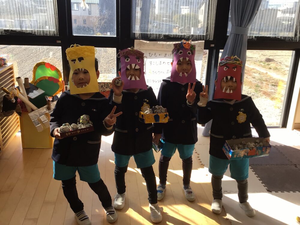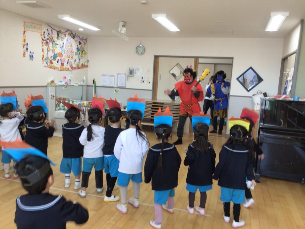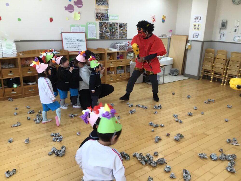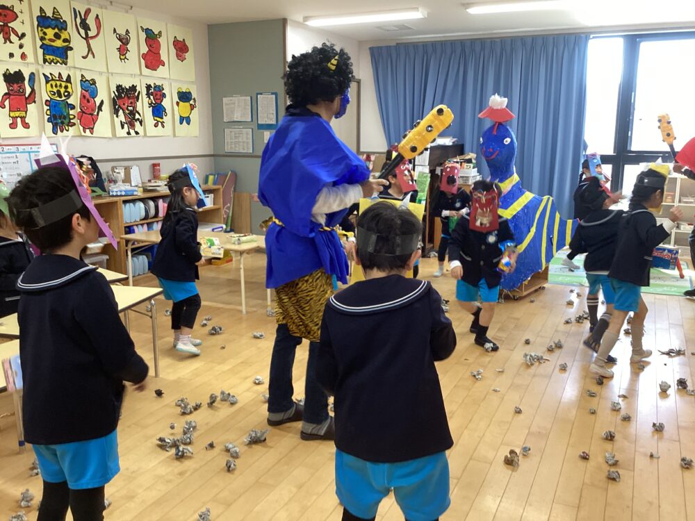怖くて泣きだしてしまうお友だちもいましたが、「鬼は外!福は内!」と頑張って鬼を退治しました🌟
