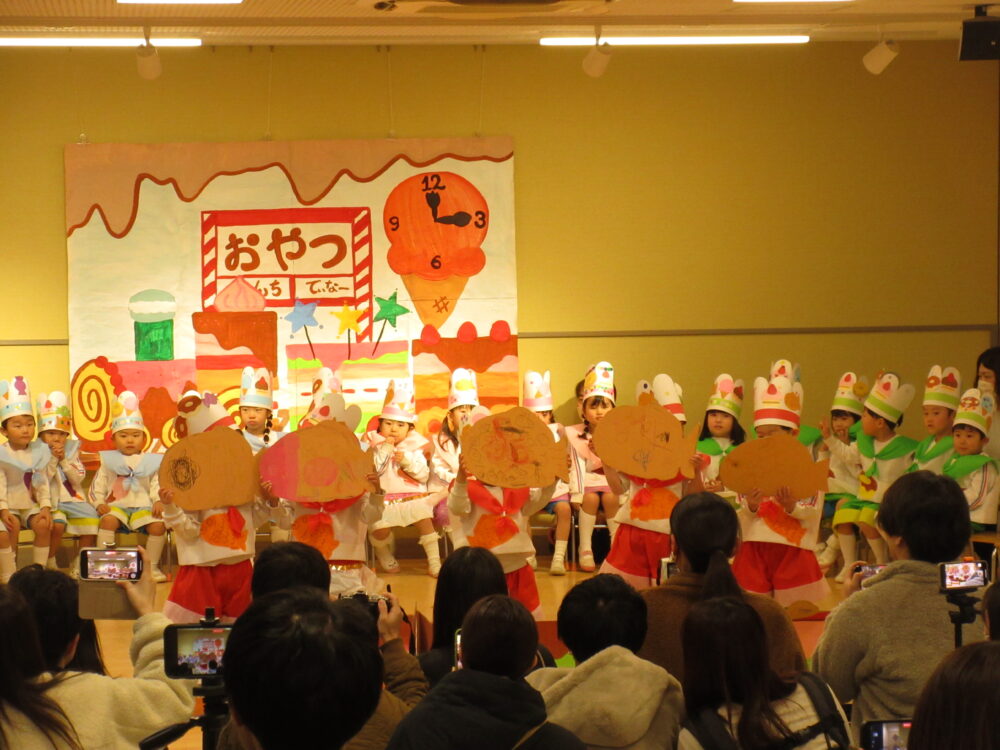 ぶどう組は「おやつでんしゃがやってきた」をしました。