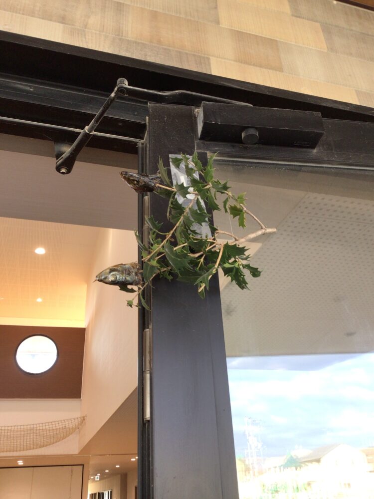 玄関には鬼が嫌う、柊の葉っぱとイワシの頭を飾りました!